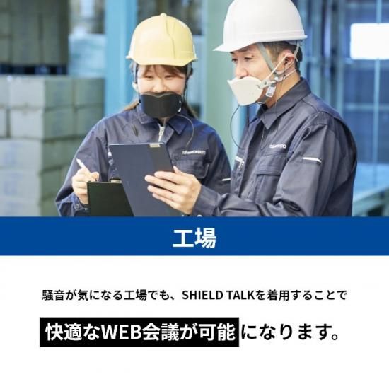 シールドトークは声を小さく抑える効果と、マスクメーカーならではのこだわりにより、快適な装着感を実現したWeb会議用ガジェットです。自分の声漏れをシールド、周りの騒音もシールド。聞かれたくない大切な会話、気になる騒音もこれで安心です。いつでも、どんな場所でもクリアな通話が可能な、新時代のリモートガジェットです。